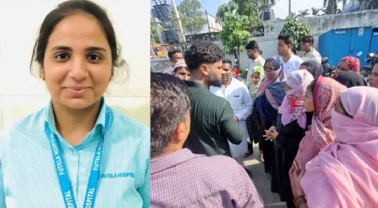 युवती का पोस्टमार्टम होने के बाद शव को लेकर गुस्साई भीड़ ने प्राइवेट अस्पताल में हंगामा काटा।