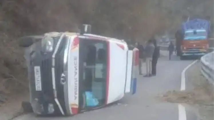 हादसा: आदिबद्री के समीप एक तीखे मोड़ पर चालक ने वाहन से नियंत्रण खो दिया, जिससे एंबुलेंस सड़क पर ही पलट गई।