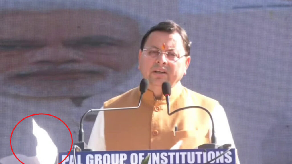 गलत नाम पढ़ने पर सीएम धामी को तुरंत गलती का अहसास हुआ और उन्होंने पर्ची पर लिखी गलती पर नाराजगी व्यक्त की।