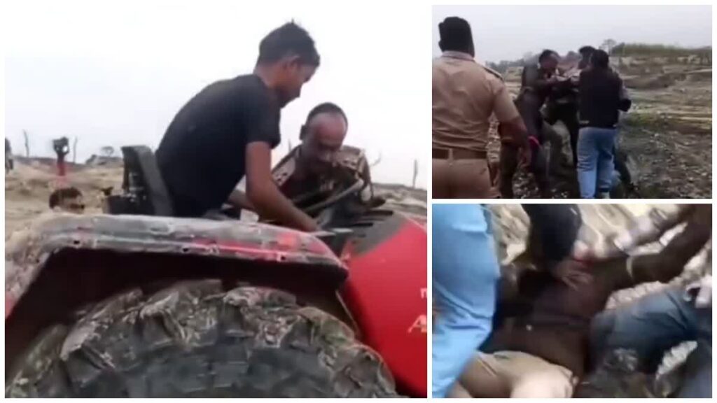 कुचलने का प्रयास: आरोपियों ने वन दारोगा पर ट्रैक्टर चढ़ाने की कोशिश की।