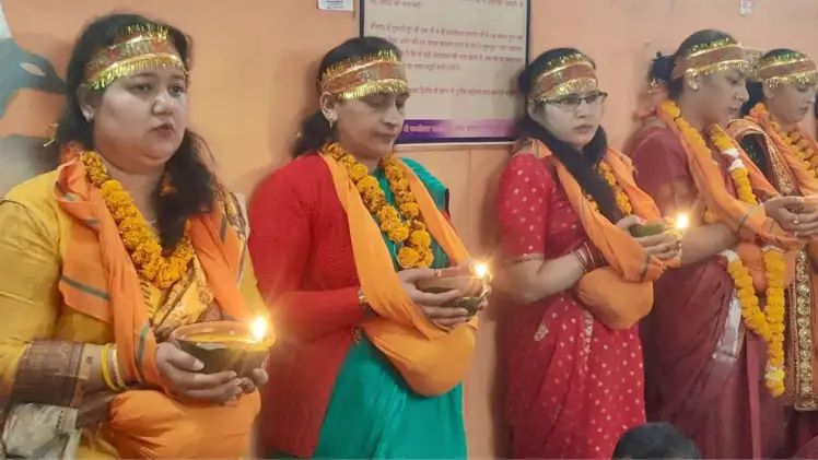 - आरंभ: मंगलवार को गोधूलि बेला में शाम 5 बजकर 30 मिनट पर मंदिर के महंत आशुतोष पुरी ने अनुष्ठान में शामिल दंपतियों के हाथों में रखे दीपक प्रज्वलित कर अनुष्ठान का शुभारंभ किया।