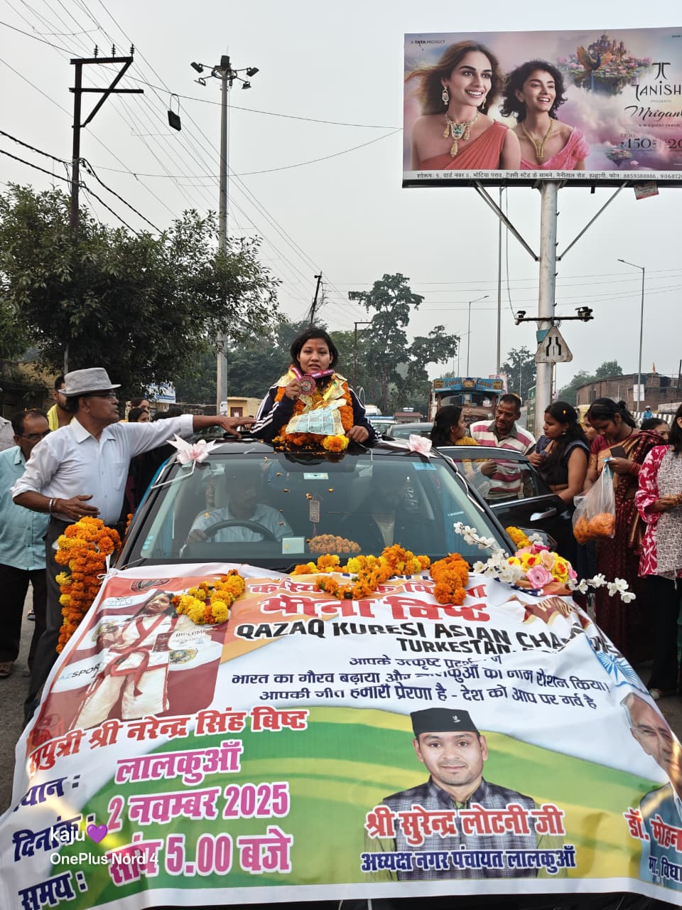लालकुआं: बिन्दुखत्ता के घोड़ानाला की बेटी मीना बिष्ट (पुत्री नरेंद्र सिंह बिष्ट) ने अंतरराष्ट्रीय स्तर पर प्रदेश और देश का नाम रोशन किया है। उन्होंने तुर्किस्तान (कज़ाख़स्तान) में आयोजित कज़ाख कुर्सी एशियन चैम्पियनशिप 2025 में शानदार प्रदर्शन करते हुए महिला 70 किलोग्राम भार वर्ग में कांस्य पदक जीता है।