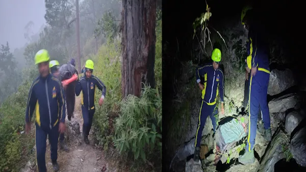 रेस्क्यू कार्य: स्थानीय नागरिकों (होटल स्वामी मदन सामंत और शिक्षक मनोज पंत) और SDRF टीम ने रात में ही रोप सिस्टम और स्ट्रेचर की सहायता से गहरी खाई में उतरकर रेस्क्यू कार्य शुरू किया।