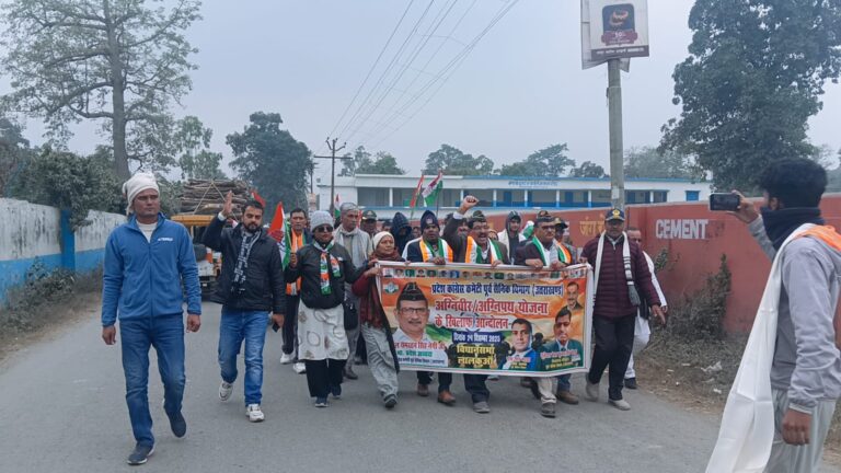 लालकुआँ: कांग्रेस पार्टी ने आज बिन्दुखत्ता स्थित शहीद स्मारक पर अग्निवीर योजना के विरुद्ध एक विशाल जनसभा और पदयात्रा का आयोजन किया। कांग्रेस के पूर्व सैनिक विभाग के तत्वावधान में आयोजित इस कार्यक्रम में योजना को युवाओं के भविष्य और देश की सुरक्षा के लिए ‘गंभीर संकट’ बताया गया।