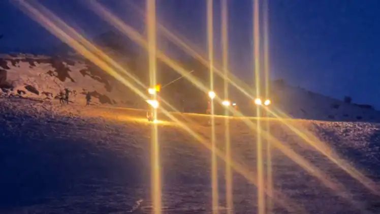 फ्लड लाइट्स का जादू: रात के अंधेरे और कड़ाके की ठंड के बीच जब फ्लड लाइट्स जलाई गईं, तो बर्फीले ढलान चांदी की तरह चमकने लगे।