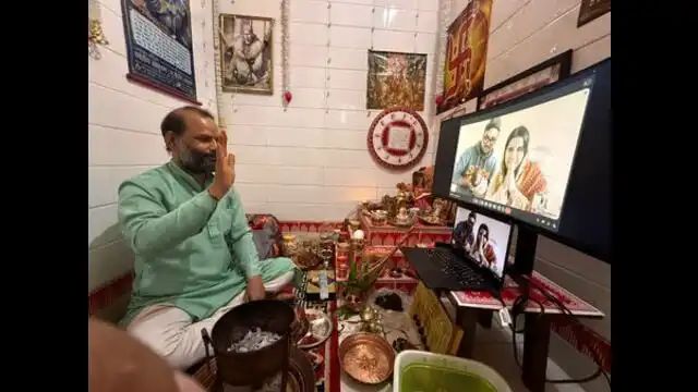 डिजिटल पुरोहित: विष्णुपुरी हल्द्वानी निवासी पंडित भूपेन्द्र उपाध्याय ने हल्द्वानी से ही वीडियो कॉल के माध्यम से मंत्रोच्चार कर पूजा संपन्न कराई।