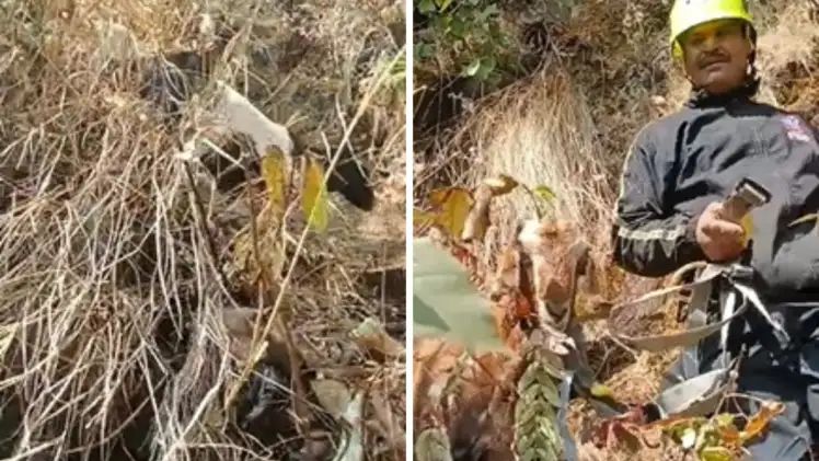 SDRF की जांबाजी: सोमवार को राजस्व टीम के साथ एसडीआरएफ (SDRF) की टीम मौके पर पहुंची। जवानों ने रस्सियों (Repelling) के सहारे चट्टान पर चढ़कर रेस्क्यू ऑपरेशन शुरू किया।