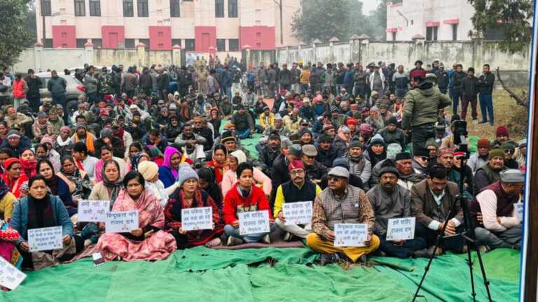 बिंदुखत्ता वनाधिकार समिति के आह्वान पर लालकुआं तहसील प्रांगण में आयोजित एकदिवसीय धरना कार्यक्रम—जिसे प्रतीकात्मक रूप से “चाय पर चर्चा” नाम दिया गया—में सैकड़ों ग्रामीणों ने शिरकत की।