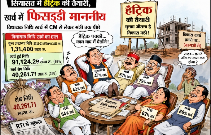 दस्तावेजों के अनुसार वर्ष 2022-23 से दिसंबर 2025 तक विधायकों को कुल 1,31,400 लाख रुपये की निधि मिली, लेकिन इसमें से केवल 91,124.29 लाख रुपये ही खर्च हो पाए, जबकि 40,261.71 लाख रुपये अब भी शेष हैं।