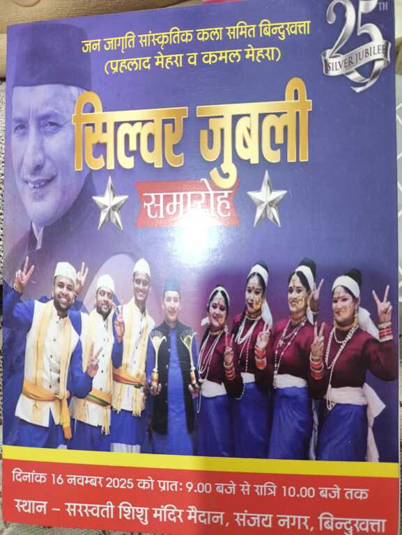 लालकुआँ: जन जागृति सांस्कृतिक कला समिति बिंदुखत्ता आगामी 16 नवंबर को अपने सिल्वर जुबली समारोह का भव्य आयोजन करने जा रही है। इस समारोह का उद्देश्य कुमाऊनी संस्कृति का व्यापक प्रचार-प्रसार करना है।