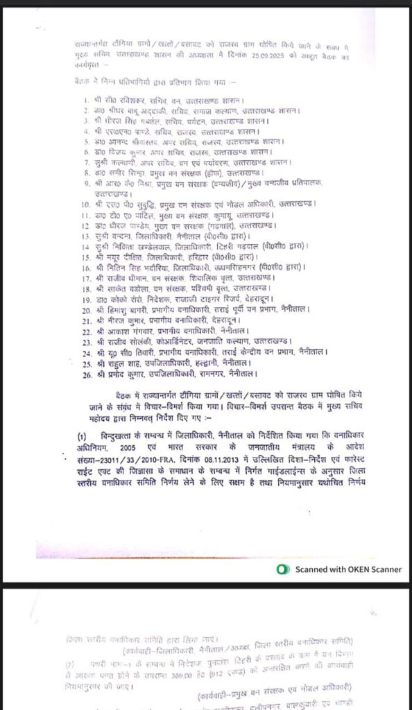 - उपस्थिति: बैठक में सचिव स्तर के अधिकारी, प्रमुख वन संरक्षक, राजस्व एवं पंचायती राज विभाग के अधिकारी, नीति आयोग के प्रतिनिधि, तथा नैनीताल जिले के जिलाधिकारी और उपजिलाधिकारी समेत अन्य संबद्ध विभागों के वरिष्ठ अधिकारी मौजूद रहे।