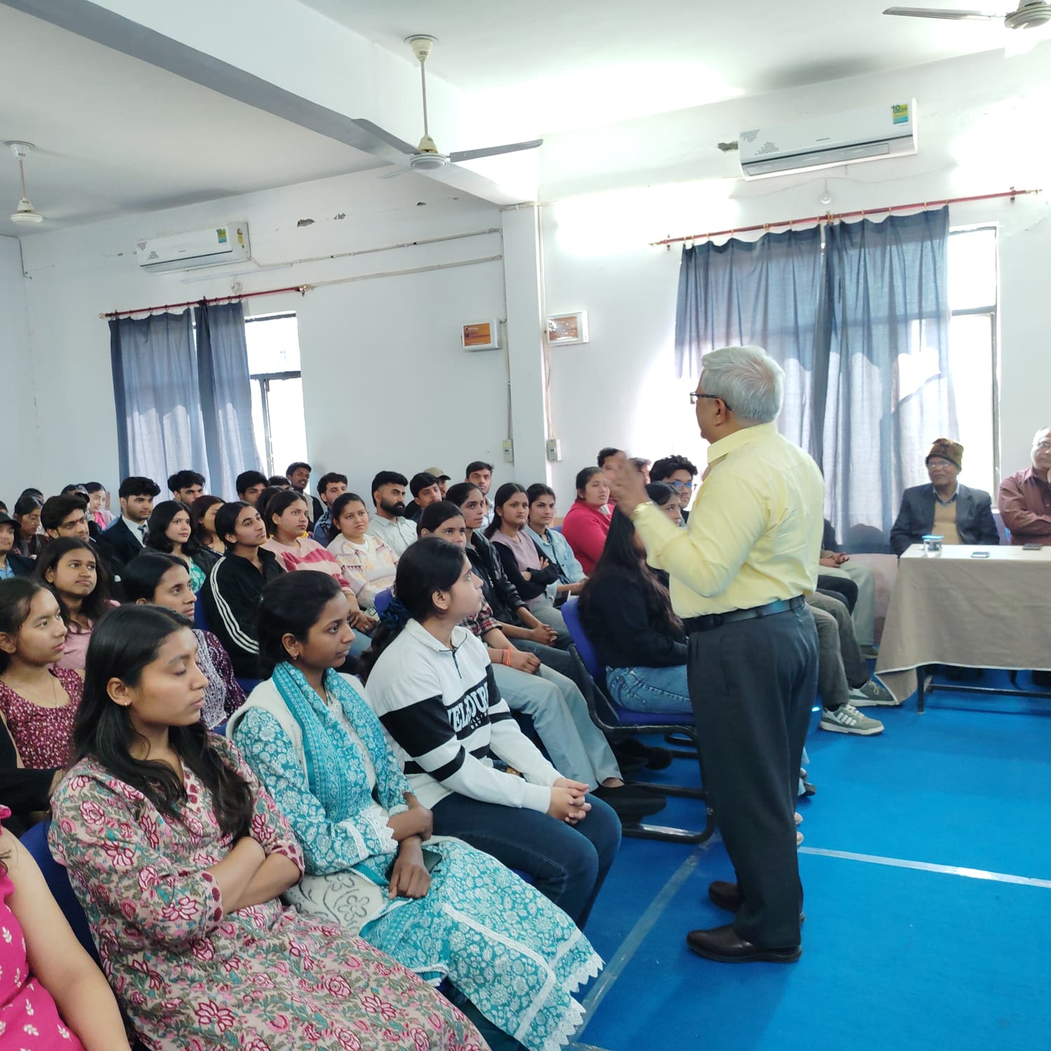 डॉ. अरोड़ा ने अनेक जीवन प्रसंगों और उदाहरणों के माध्यम से यह समझाया कि सकारात्मक भावनाएँ ही स्वस्थ मानवीय संबंधों की आधारशिला हैं। उनका वक्तव्य सरल, प्रभावशाली और संवेदनशील शैली में प्रस्तुत हुआ, जिससे पूरा सभागार एकाग्र होकर सुनता रहा। विद्यार्थियों ने उत्साहपूर्वक प्रश्न पूछे और अपने अनुभव साझा किए।