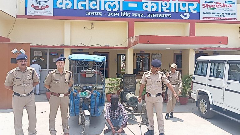 काशीपुर।घर के आगे खड़े जनरेटर को टुकटुक में बांधकर ले जाने वाले चोर को पुलिस ने तीसरी आँख की मदद से 12 घंटे के भीतर गिरफ्तार कर चोरी किया गया जनरेटर और चोरी में प्रयुक्त टुकटुक भी बरामद किया है।