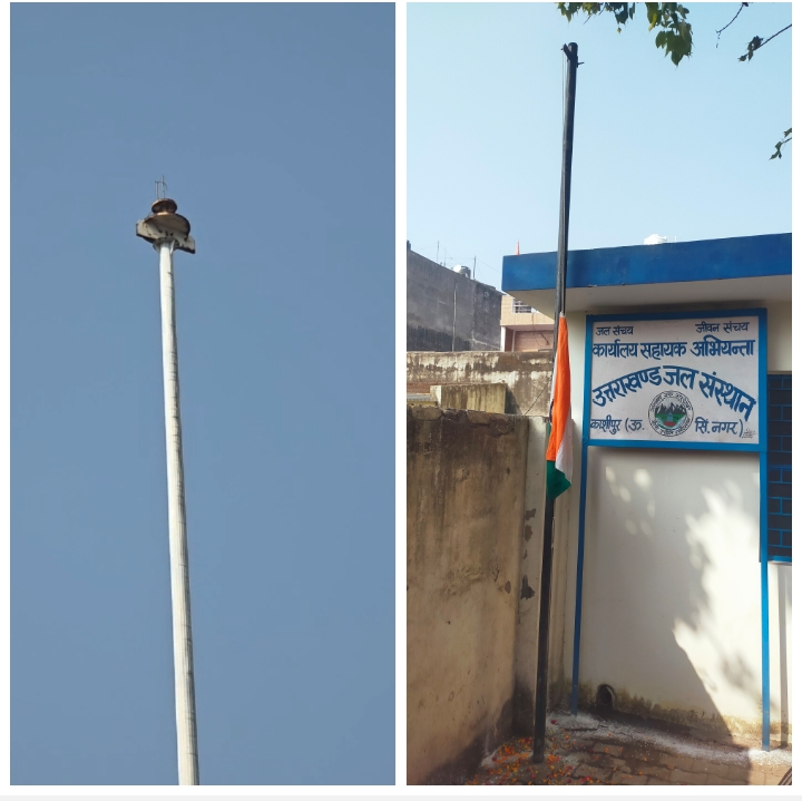 वहीं जल संस्थान कार्यालय में राष्ट्रीय ध्वज का आधा झुका होना प्रशासनिक गैर-जिम्मेदारी की शर्मनाक मिसाल बन गया। सवाल यह है कि क्या राष्ट्रीय पर्व पर भी जिम्मेदार अधिकारियों की निगरानी इतनी ढीली हो चुकी है कि तिरंगे के सम्मान की भी परवाह नहीं रही?