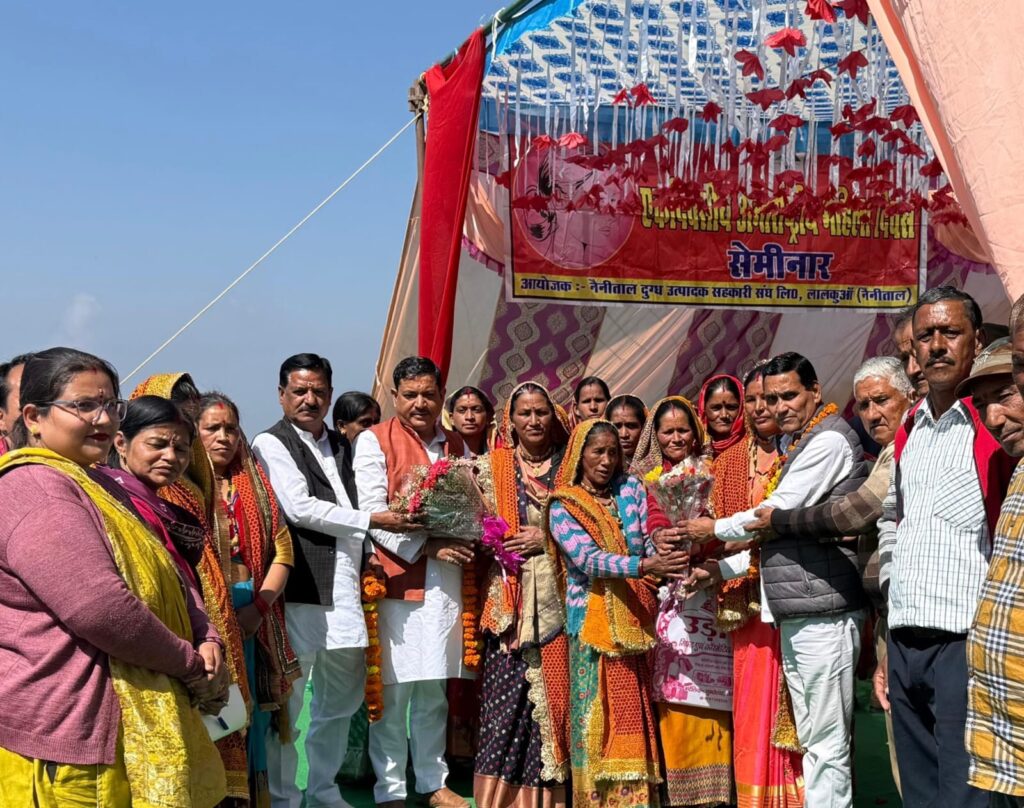 लालकुआं/खुटियाखाल (9 मार्च 2026): अंतरराष्ट्रीय महिला दिवस के उपलक्ष्य में आयोजित एक दिवसीय सेमिनार में वक्ताओं ने पर्वतीय अर्थव्यवस्था में महिलाओं की निर्णायक भूमिका पर जोर दिया। पूर्व विधायक दान सिंह भंडारी और दुग्ध संघ अध्यक्ष मुकेश बोरा की मौजूदगी में उत्कृष्ट कार्य करने वाली महिला दुग्ध उत्पादकों को पुरस्कृत किया गया।